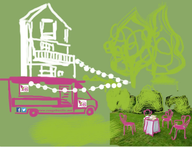 Realization of the logo, the graphic charter and the decoration of the Parisian food truck Rouge Basilic.